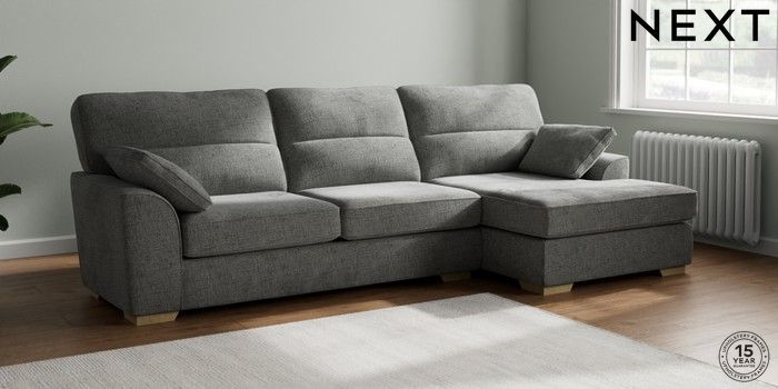 7.2.10 Stamford Highback Large Sofa Chaise - Right Hand Chunky Chenille Dark Grey Large Square Angle - Light | Made Click here to use our website with more accessibility support, for example screen readers