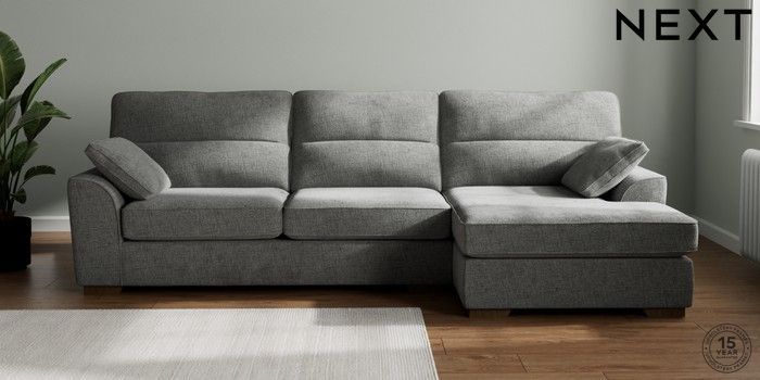 7.2.10 Stamford Highback Large Sofa Chaise - Right Hand Chunky Chenille Dark Grey Large Square Angle - Mid | Made Click here to use our website with more accessibility support, for example screen readers