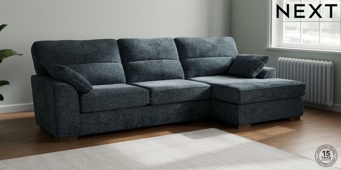 7.2.10 Stamford Highback Large Sofa Chaise - Right Hand Chunky Chenille Dark Navy Blue Large Square Angle - Mid | Made Click here to use our website with more accessibility support, for example screen readers