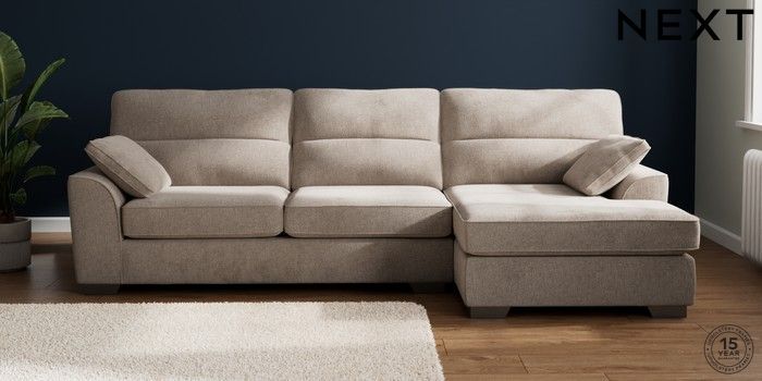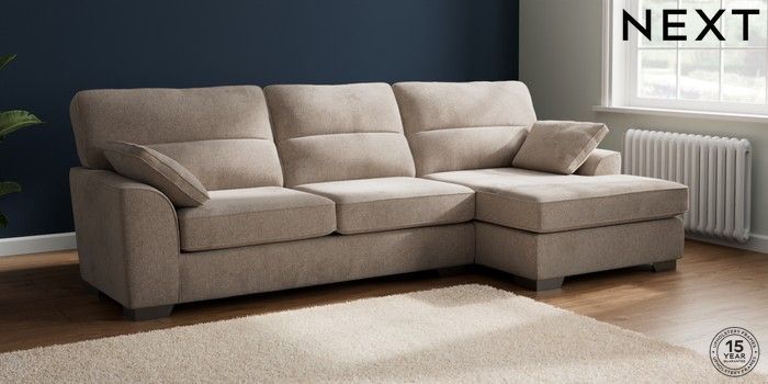 7.2.10 Stamford Highback Large Sofa Chaise - Right Hand Chunky Chenille Light Dove Large Square Angle - Gunmetal | Made Click here to use our website with more accessibility support, for example screen readers