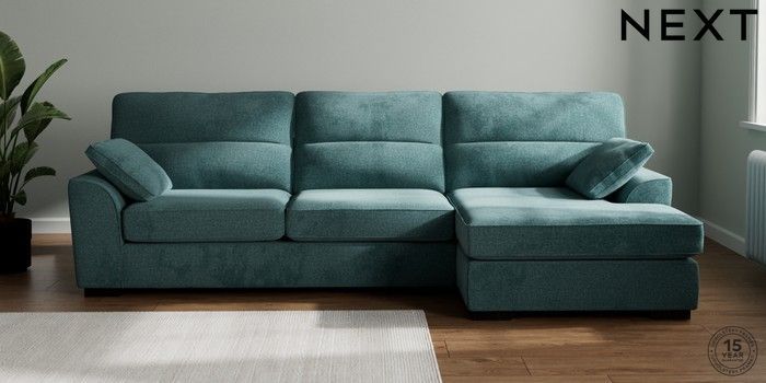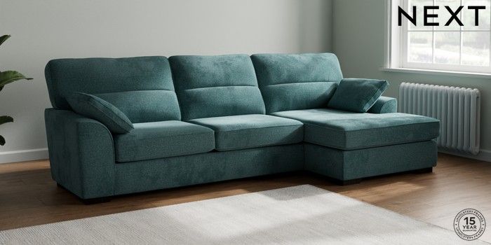 7.2.10 Stamford Highback Large Sofa Chaise - Right Hand Chunky Chenille Mid Teal Green Large Square Angle - Dark | Made Click here to use our website with more accessibility support, for example screen readers