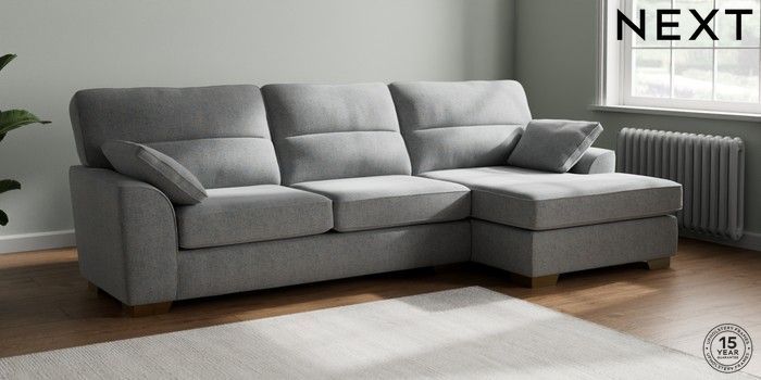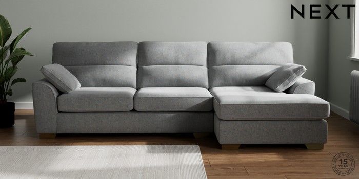 7.2.10 Stamford Highback Large Sofa Chaise - Right Hand Chunky Marl Mid Grey Large Square Angle - Brushed Brass | Made Click here to use our website with more accessibility support, for example screen readers