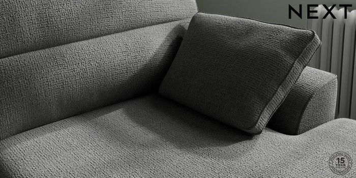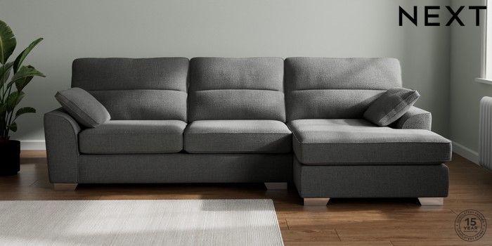 7.2.10 Stamford Highback Large Sofa Chaise - Right Hand Chunky Texture Dark Grey Large Square Angle - Chrome Metal | Made Click here to use our website with more accessibility support, for example screen readers