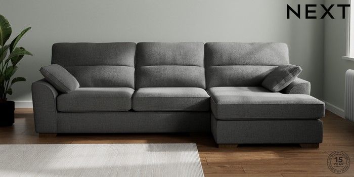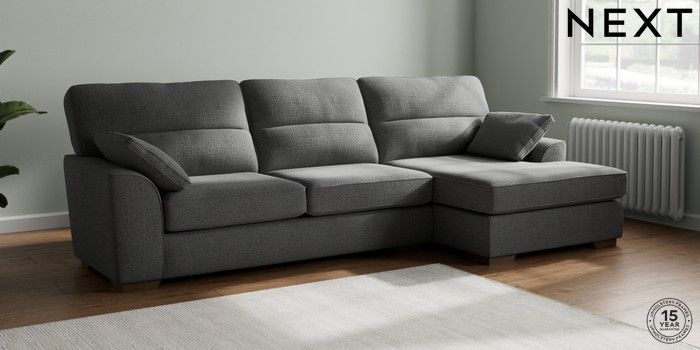 7.2.10 Stamford Highback Large Sofa Chaise - Right Hand Chunky Texture Dark Grey Large Square Angle - Mid | Made Click here to use our website with more accessibility support, for example screen readers
