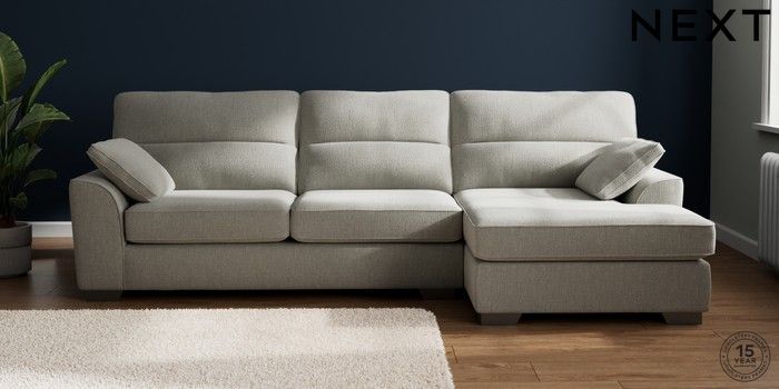 7.2.10 Stamford Highback Large Sofa Chaise - Right Hand Chunky Texture Dove Large Square Angle - Gunmetal | Made Click here to use our website with more accessibility support, for example screen readers