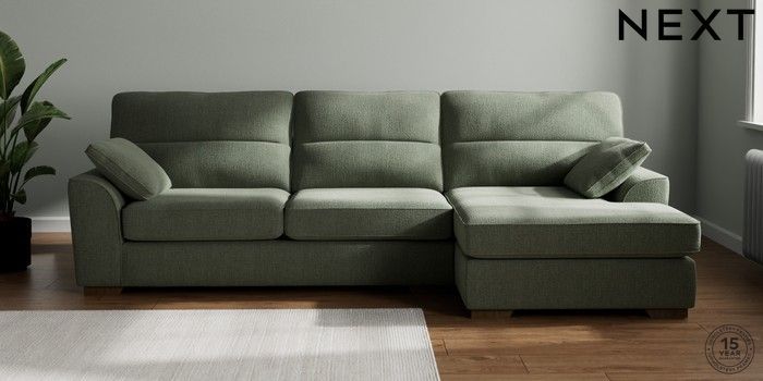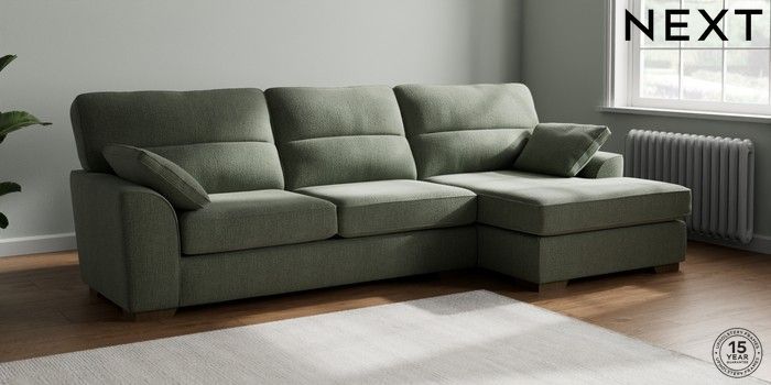 7.2.10 Stamford Highback Large Sofa Chaise - Right Hand Chunky Texture Mid Forest Green Large Square Angle - Mid | Made Click here to use our website with more accessibility support, for example screen readers