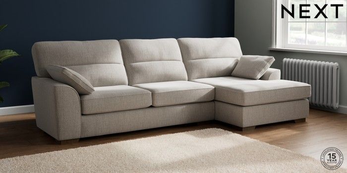 7.2.10 Stamford Highback Large Sofa Chaise - Right Hand Chunky Weave Dove Grey Large Square Angle - Mid | Made Click here to use our website with more accessibility support, for example screen readers