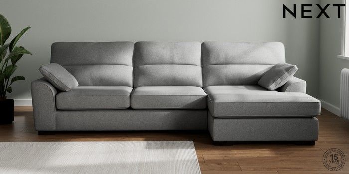 7.2.10 Stamford Highback Large Sofa Chaise - Right Hand Chunky Weave Mid Grey Large Square Angle - Dark | Made Click here to use our website with more accessibility support, for example screen readers