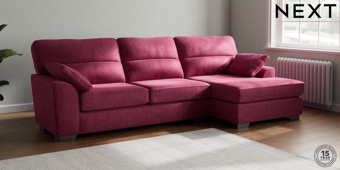 7.2.10 Stamford Highback Large Sofa Chaise - Right Hand Cotswold Chenille Dark Raspberry Pink Large Square Angle - Gunmetal | Made Click here to use our website with more accessibility support, for example screen readers