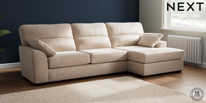 7.2.10 Stamford Highback Large Sofa Chaise - Right Hand Cotswold Chenille Light Natural Large Square Angle - Dark | Made Click here to use our website with more accessibility support, for example screen readers