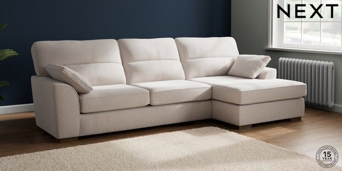 7.2.10 Stamford Highback Large Sofa Chaise - Right Hand Cotswold Chenille Oyster Large Square Angle - Mid | Made Click here to use our website with more accessibility support, for example screen readers