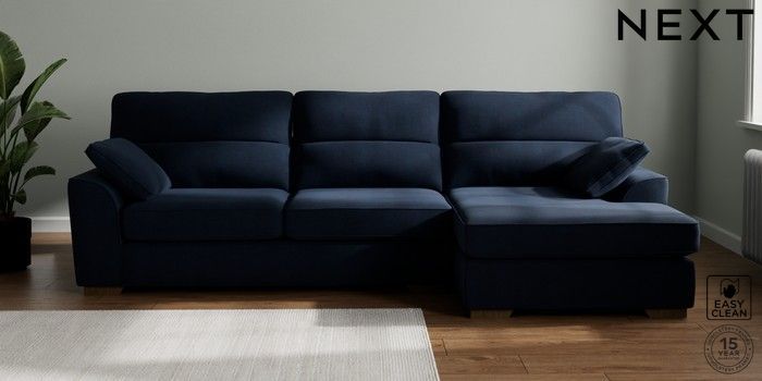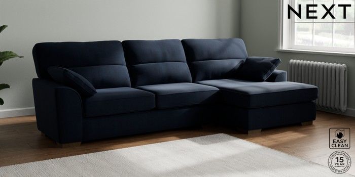 7.2.10 Stamford Highback Large Sofa Chaise - Right Hand Fine Chenille Easy Clean Dark Navy Blue Large Square Angle - Mid | Made Click here to use our website with more accessibility support, for example screen readers