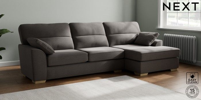 7.2.10 Stamford Highback Large Sofa Chaise - Right Hand Fine Chenille Easy Clean Dark Smoke Grey Large Square Angle - Light | Made Click here to use our website with more accessibility support, for example screen readers
