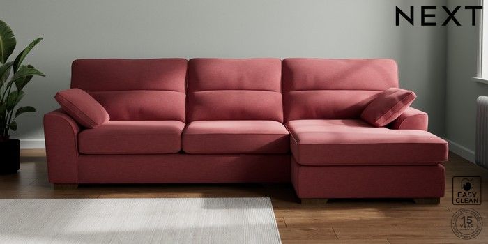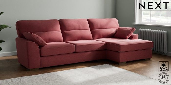 7.2.10 Stamford Highback Large Sofa Chaise - Right Hand Fine Chenille Easy Clean Mid Pink Large Square Angle - Mid | Made Click here to use our website with more accessibility support, for example screen readers