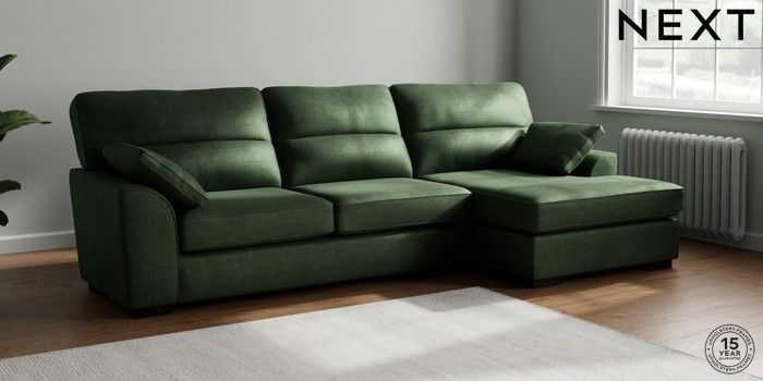 7.2.10 Stamford Highback Large Sofa Chaise - Right Hand Luxe Chenille Dark Green Large Square Angle - Dark | Made Click here to use our website with more accessibility support, for example screen readers