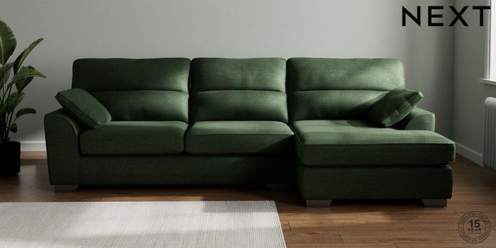 7.2.10 Stamford Highback Large Sofa Chaise - Right Hand Luxe Chenille Dark Green Large Square Angle - Gunmetal | Made Click here to use our website with more accessibility support, for example screen readers
