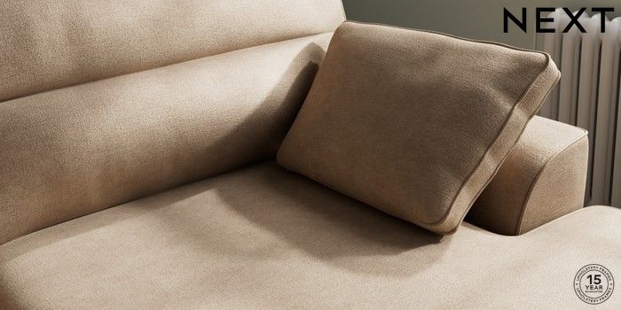 7.2.10 Stamford Highback Large Sofa Chaise - Right Hand Luxe Chenille Mid Camel Beige Large Square Angle - Chrome Metal | Made Click here to use our website with more accessibility support, for example screen readers