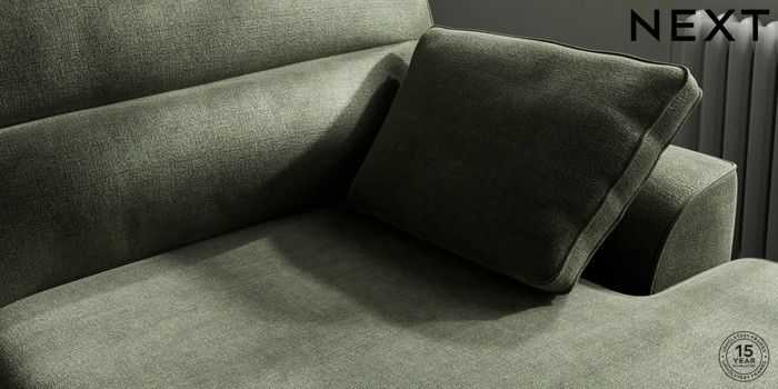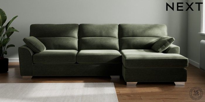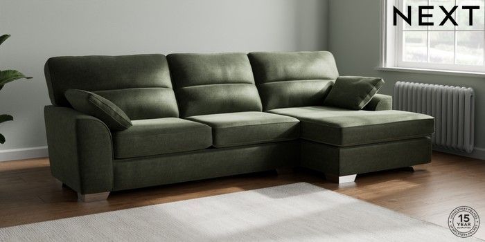 7.2.10 Stamford Highback Large Sofa Chaise - Right Hand Luxe Chenille Mid Green Large Square Angle - Chrome Metal | Made Click here to use our website with more accessibility support, for example screen readers