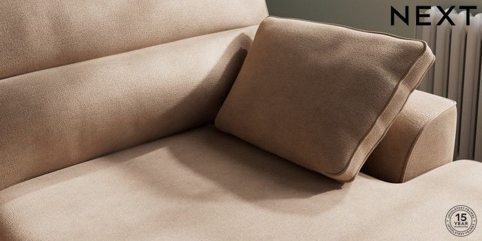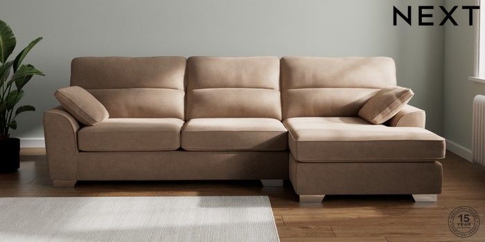 7.2.10 Stamford Highback Large Sofa Chaise - Right Hand Luxe Chenille Mid Natural Large Square Angle - Chrome Metal | Made Click here to use our website with more accessibility support, for example screen readers