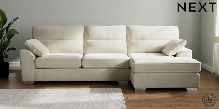 7.2.10 Stamford Highback Large Sofa Chaise - Right Hand Luxe Chenille Oyster Large Square Angle - Chrome Metal | Made Click here to use our website with more accessibility support, for example screen readers