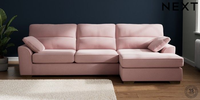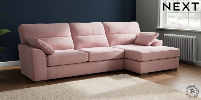 7.2.10 Stamford Highback Large Sofa Chaise - Right Hand Natural Mix Light Rose Pink Large Square Angle - Mid | Made Click here to use our website with more accessibility support, for example screen readers