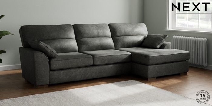 7.2.10 Stamford Highback Large Sofa Chaise - Right Hand Plush Chenille Dark Grey Large Square Angle - Mid | Made Click here to use our website with more accessibility support, for example screen readers