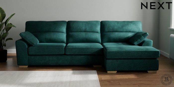 7.2.10 Stamford Highback Large Sofa Chaise - Right Hand Plush Chenille Dark Teal Green Large Square Angle - Light | Made Click here to use our website with more accessibility support, for example screen readers
