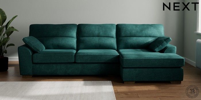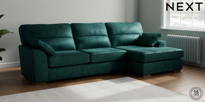 7.2.10 Stamford Highback Large Sofa Chaise - Right Hand Plush Chenille Dark Teal Green Large Square Angle - Mid | Made Click here to use our website with more accessibility support, for example screen readers