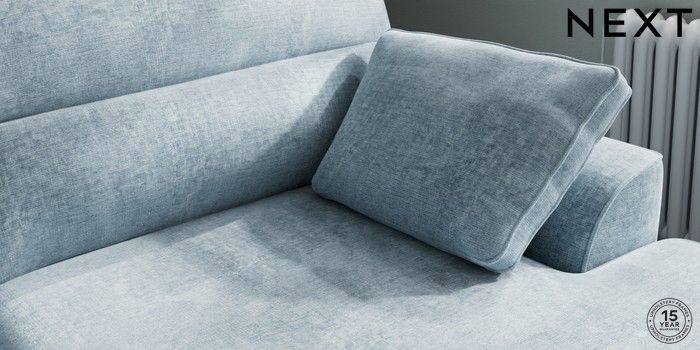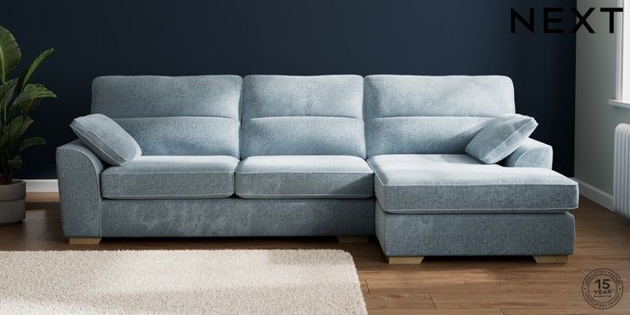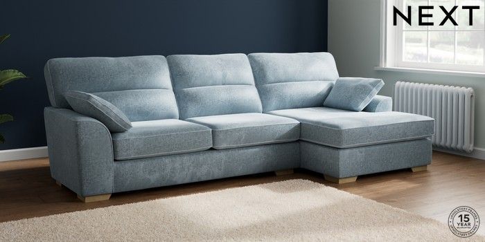7.2.10 Stamford Highback Large Sofa Chaise - Right Hand Plush Chenille Light Blue Large Square Angle - Light | Made Click here to use our website with more accessibility support, for example screen readers