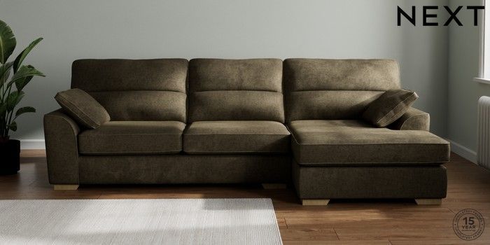 7.2.10 Stamford Highback Large Sofa Chaise - Right Hand Plush Chenille Moss Green Large Square Angle - Light | Made Click here to use our website with more accessibility support, for example screen readers