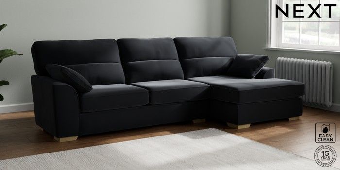 7.2.10 Stamford Highback Large Sofa Chaise - Right Hand Plush Velvet Easy Clean Charcoal Grey Large Square Angle - Light | Made Click here to use our website with more accessibility support, for example screen readers