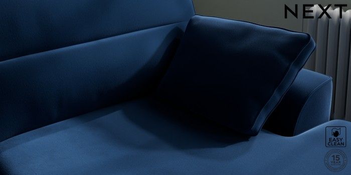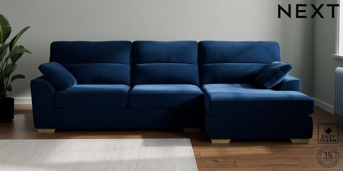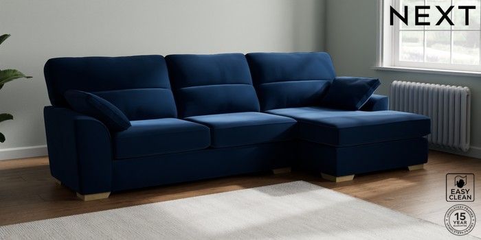7.2.10 Stamford Highback Large Sofa Chaise - Right Hand Plush Velvet Easy Clean Navy Blue Large Square Angle - Light | Made Click here to use our website with more accessibility support, for example screen readers