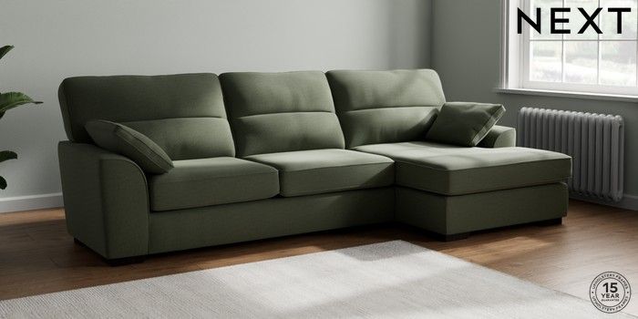 7.2.10 Stamford Highback Large Sofa Chaise - Right Hand Relaxed Linen Look Dark Green Large Square Angle - Dark | Made Click here to use our website with more accessibility support, for example screen readers