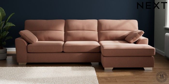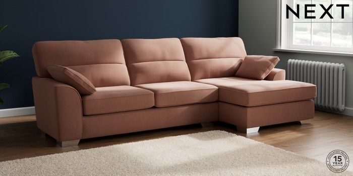 7.2.10 Stamford Highback Large Sofa Chaise - Right Hand Relaxed Linen Look Light Rust Brown Large Square Angle - Chrome Metal | Made Click here to use our website with more accessibility support, for example screen readers