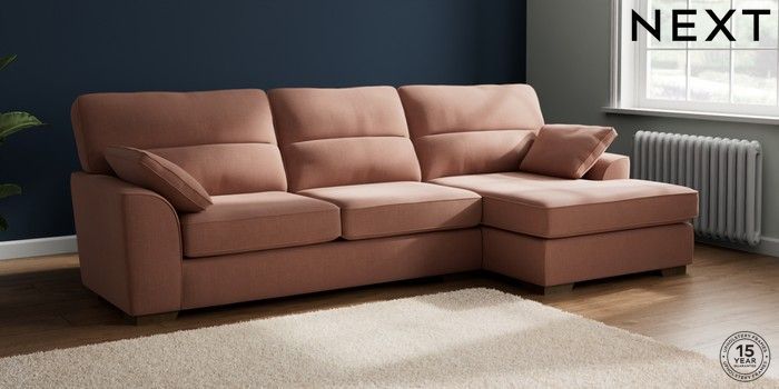 7.2.10 Stamford Highback Large Sofa Chaise - Right Hand Relaxed Linen Look Light Rust Brown Large Square Angle - Mid | Made Click here to use our website with more accessibility support, for example screen readers