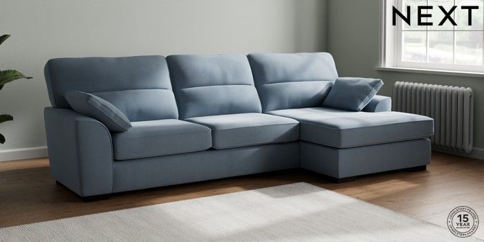 7.2.10 Stamford Highback Large Sofa Chaise - Right Hand Relaxed Linen Look Mid Blue Large Square Angle - Dark | Made Click here to use our website with more accessibility support, for example screen readers