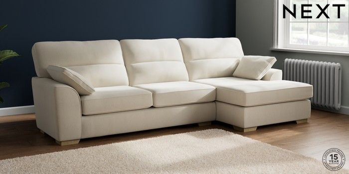7.2.10 Stamford Highback Large Sofa Chaise - Right Hand Relaxed Linen Look Oyster Large Square Angle - Light | Made Click here to use our website with more accessibility support, for example screen readers