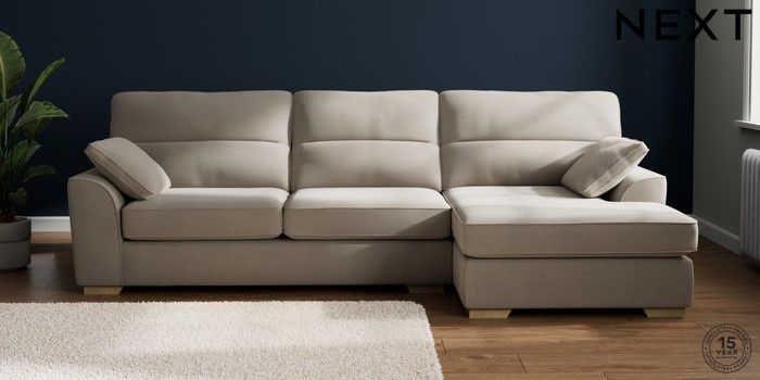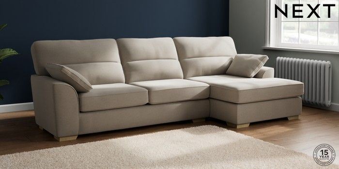 7.2.10 Stamford Highback Large Sofa Chaise - Right Hand Ripple Chenille Light Natural Large Square Angle - Light | Made Click here to use our website with more accessibility support, for example screen readers