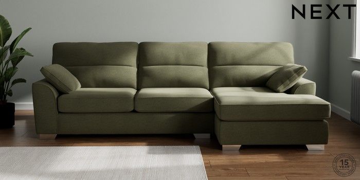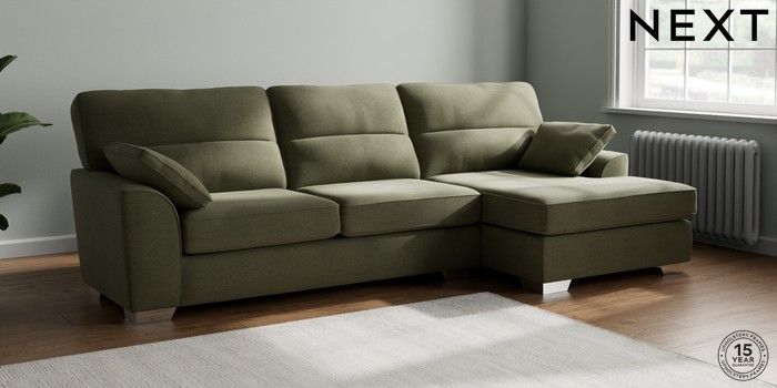 7.2.10 Stamford Highback Large Sofa Chaise - Right Hand Ripple Chenille Mid Moss Green Large Square Angle - Chrome Metal | Made Click here to use our website with more accessibility support, for example screen readers