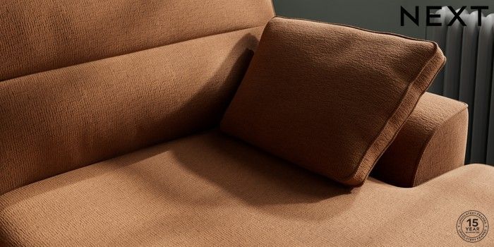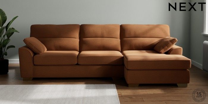 7.2.10 Stamford Highback Large Sofa Chaise - Right Hand Ripple Chenille Mid Rust Brown Large Square Angle - Brushed Brass | Made Click here to use our website with more accessibility support, for example screen readers
