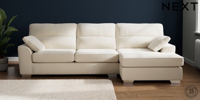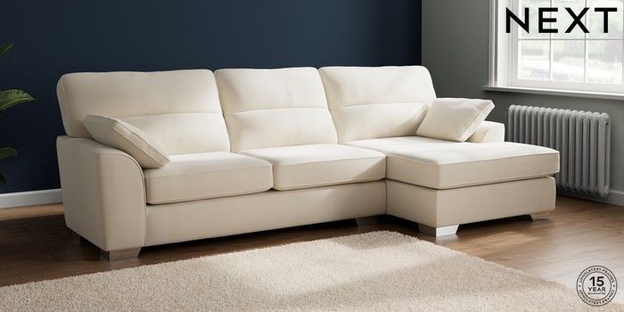 7.2.10 Stamford Highback Large Sofa Chaise - Right Hand Ripple Chenille Oyster Large Square Angle - Chrome Metal | Made Click here to use our website with more accessibility support, for example screen readers