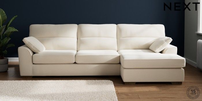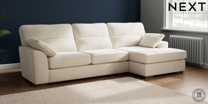 7.2.10 Stamford Highback Large Sofa Chaise - Right Hand Ripple Chenille Oyster Large Square Angle - Mid | Made Click here to use our website with more accessibility support, for example screen readers