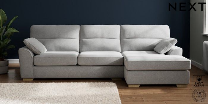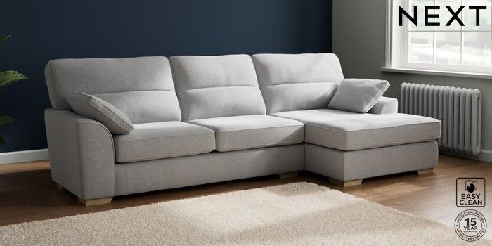 7.2.10 Stamford Highback Large Sofa Chaise - Right Hand Tweedy Blend Easy Clean Light Silver Grey Large Square Angle - Light | Made Click here to use our website with more accessibility support, for example screen readers