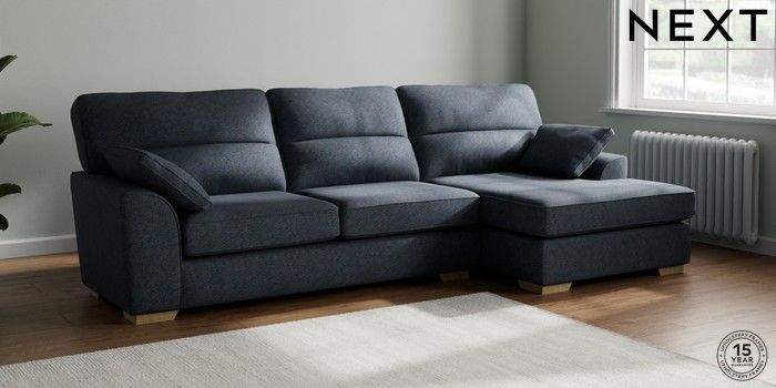 7.2.10 Stamford Highback Large Sofa Chaise - Right Hand Tweedy Chenille Navy Blue Large Square Angle - Light | Made Click here to use our website with more accessibility support, for example screen readers