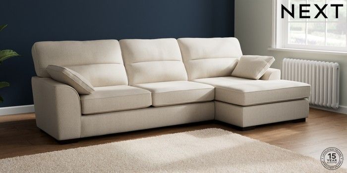 7.2.10 Stamford Highback Large Sofa Chaise - Right Hand Tweedy Chenille Oyster Large Square Angle - Dark | Made Click here to use our website with more accessibility support, for example screen readers