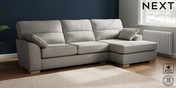 7.2.10 Stamford Highback Large Sofa Chaise - Right Hand Woven Chenille Easy Clean Light Grey Large Square Angle - Light | Made Click here to use our website with more accessibility support, for example screen readers