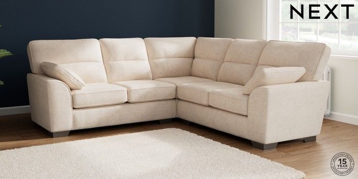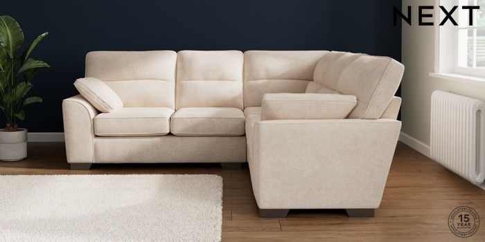 7.2.10 Stamford Highback Medium Corner Sofa - Universal Boucle Chenille Oyster Large Square Angle - Gunmetal | Made Click here to use our website with more accessibility support, for example screen readers