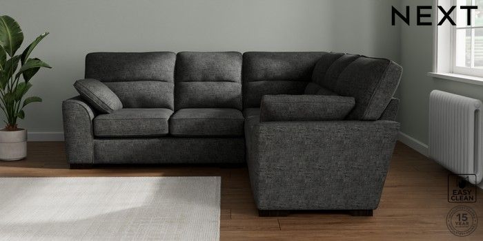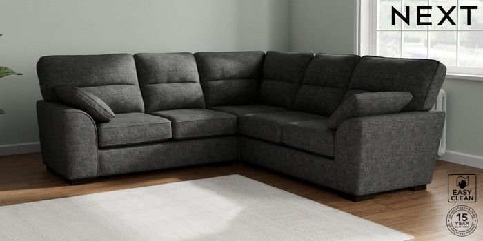 7.2.10 Stamford Highback Medium Corner Sofa - Universal Boucle Weave Easy Clean Charcoal Grey Large Square Angle - Dark | Made Click here to use our website with more accessibility support, for example screen readers