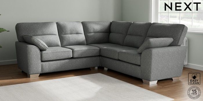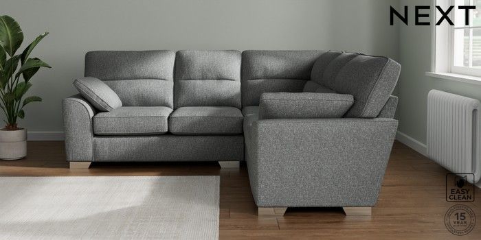 7.2.10 Stamford Highback Medium Corner Sofa - Universal Chunky Boucle Easy Clean Mid Grey Large Square Angle - Chrome Metal | Made Click here to use our website with more accessibility support, for example screen readers