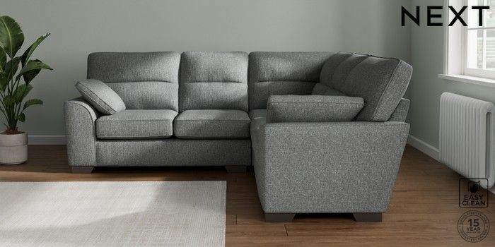 7.2.10 Stamford Highback Medium Corner Sofa - Universal Chunky Boucle Easy Clean Mid Grey Large Square Angle - Gunmetal | Made Click here to use our website with more accessibility support, for example screen readers